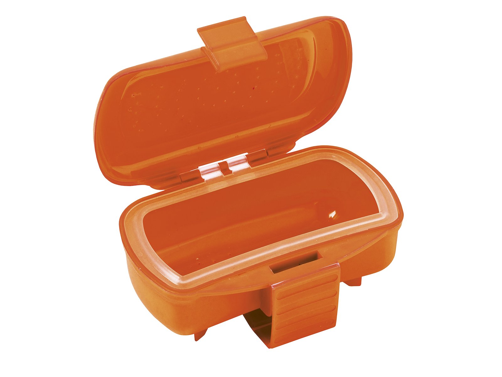 Klassisk markboks du kan feste på beltet ditt. Luftehull på lokket. Gummilistene gir tett og sikker låsing.