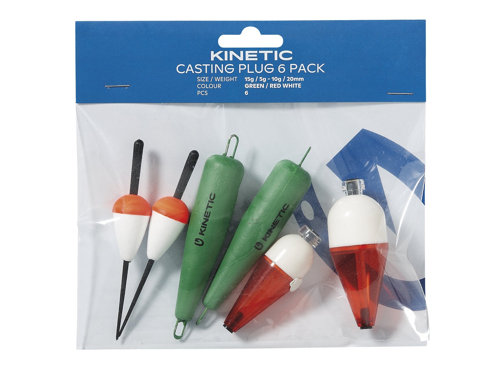 Kinetic 6-Pack med dupper er et svært effektivt duppsett med 2x3 dupptyper som dekker de fleste behov i salt- og ferskvann. De klassiske isoporduppene er perfekte for fiske nært land, mens de gjennomgående er allroundere. Til sist er de to kasteduppene ideelle for lange kast med agn, gummijigg eller flue.